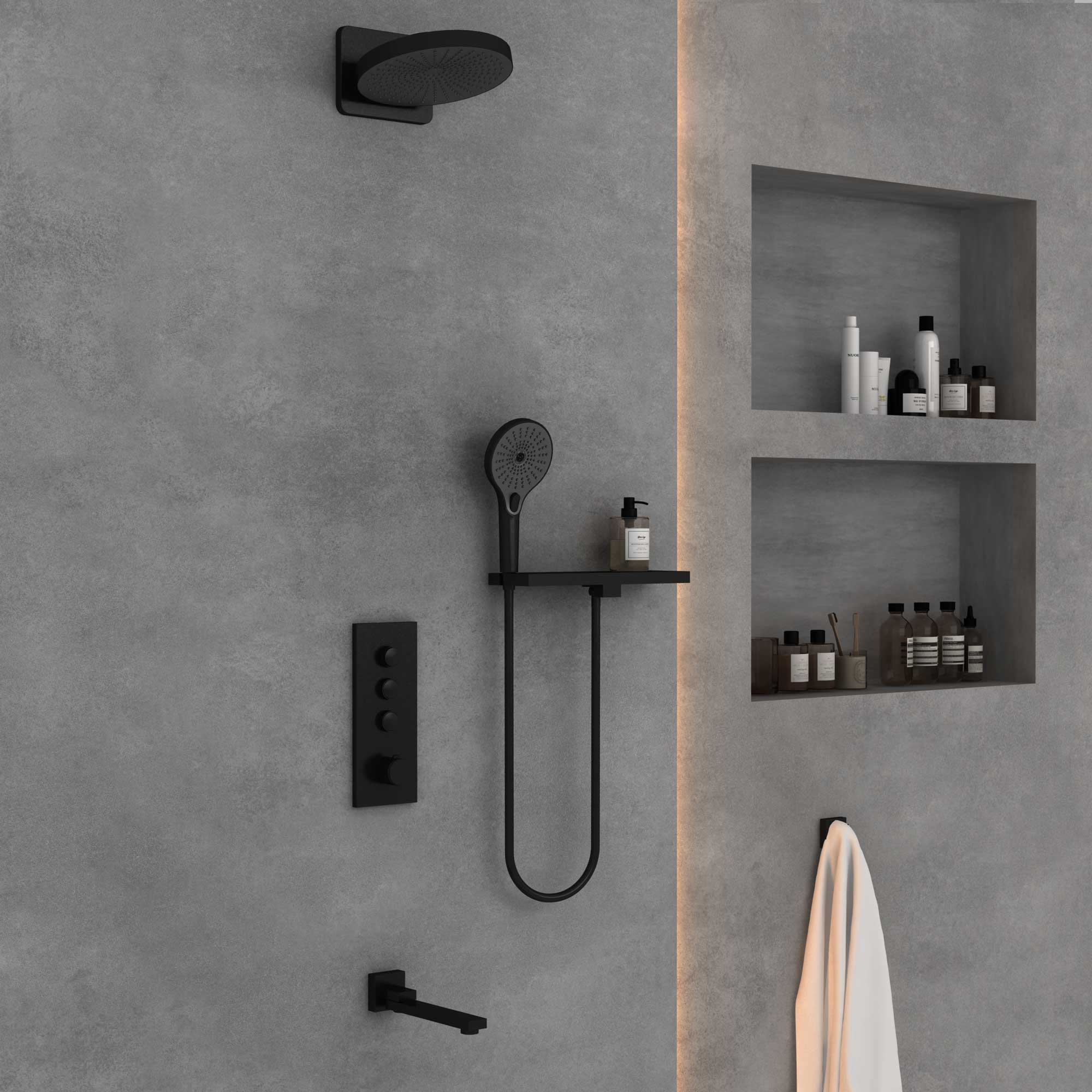 Душевой комплект термостатический встраиваемый, двухрежимный цвет черный VSFW-4212MB VINCEA